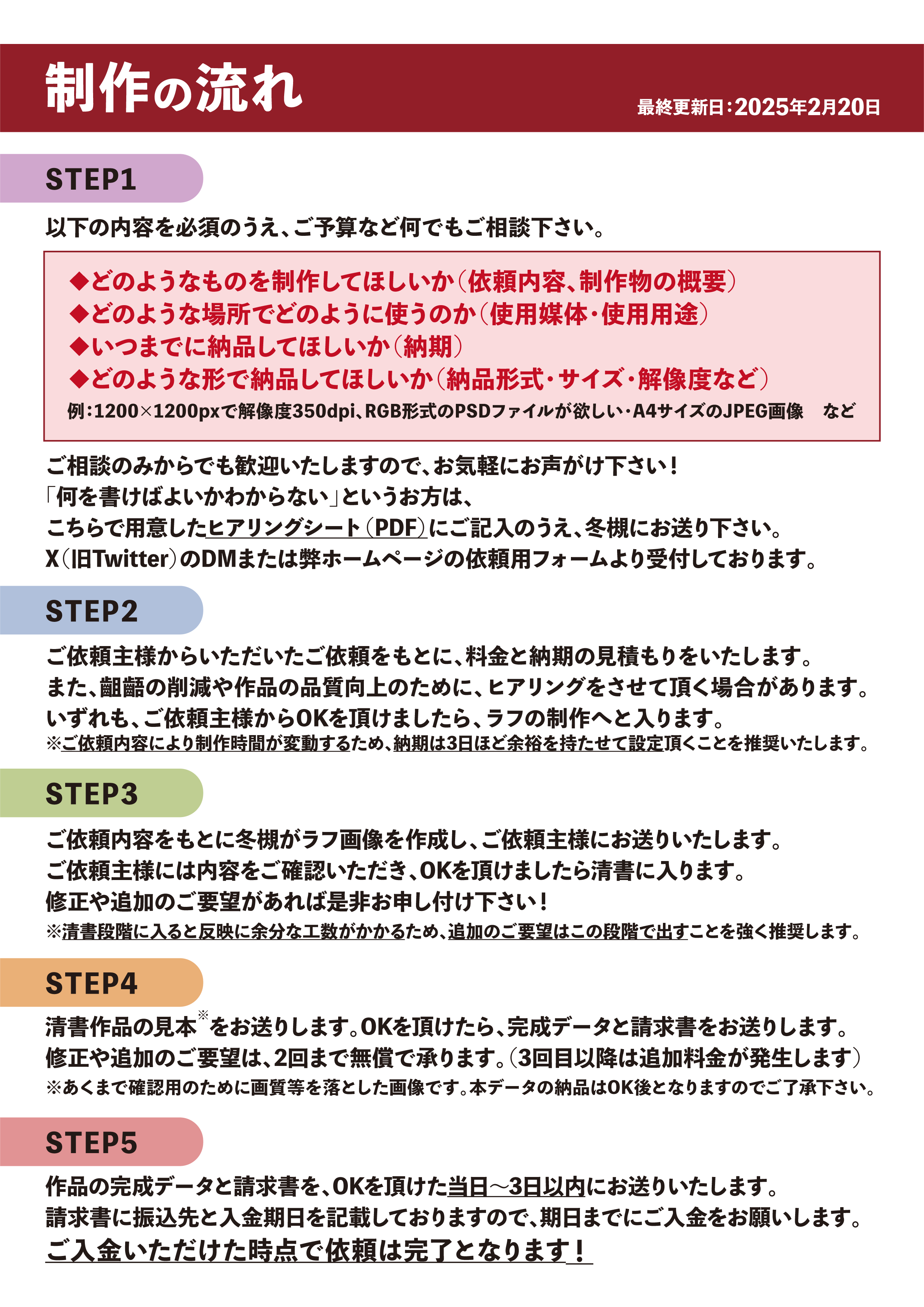 作品例・絵柄のサンプルは『制作実績』『きまぐれ画廊』からご覧いただけます。